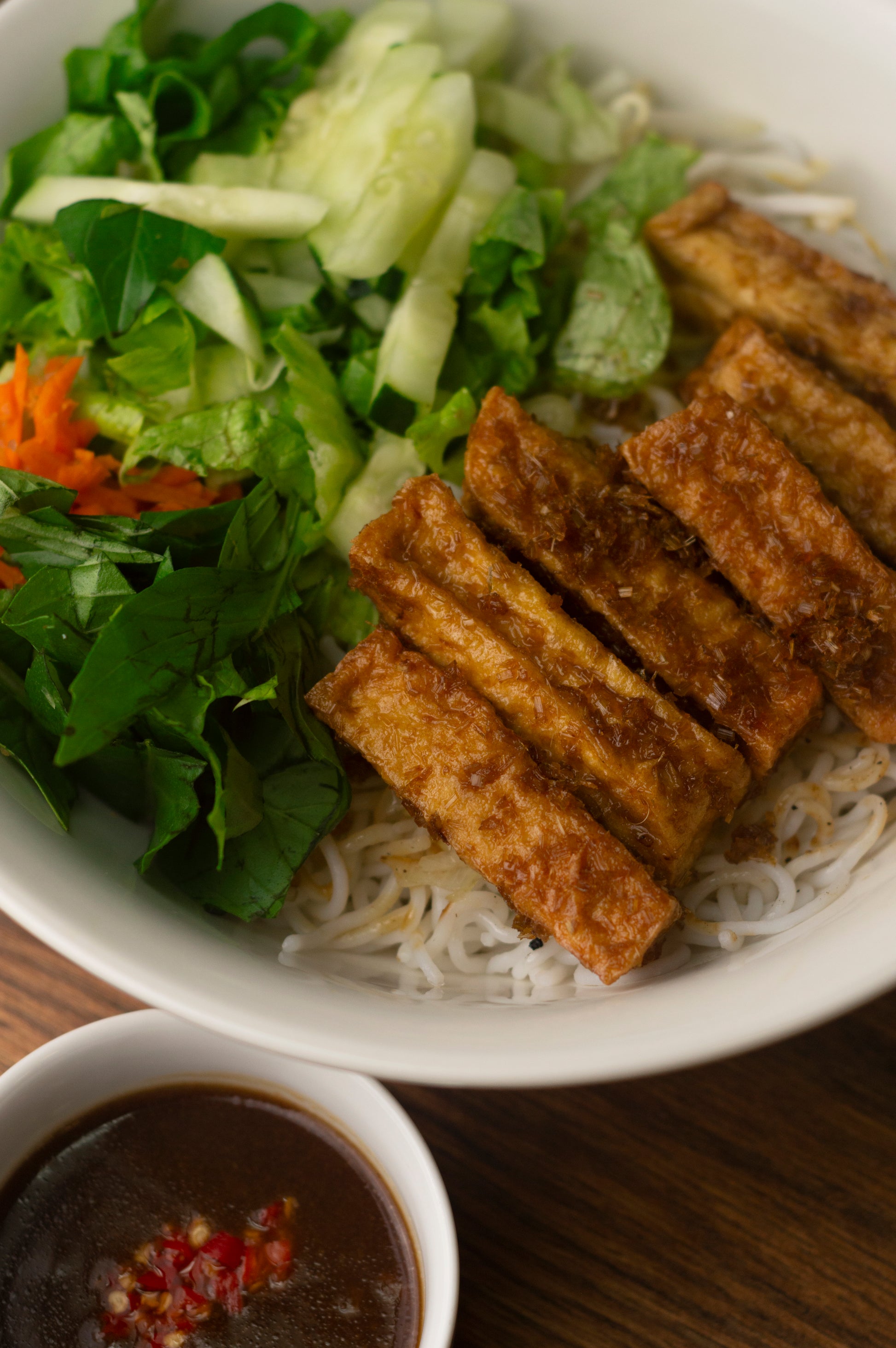 F6. Tofu with Vermicelli - Bún tàu hũ chiên